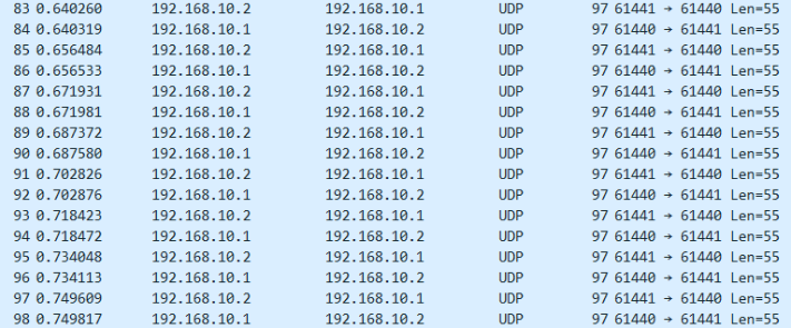 通过wireshark软件可捕获电脑和开发板之间的通信数据包,如下图所示。