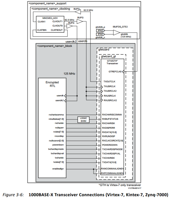 gtx_clk为IP核工作的全局时钟源,频率125MHz。s_axi_aclk为AXI-Lite接口的同步时钟。其余时钟refclk、gtx_clk90等均与GMII、RGMII接口与外部PHY芯片连接有关,由于设计中IP核与1G/2.5G Ethernet PCS/PMA or SGMII连接。因此,不需要使用这些时钟。