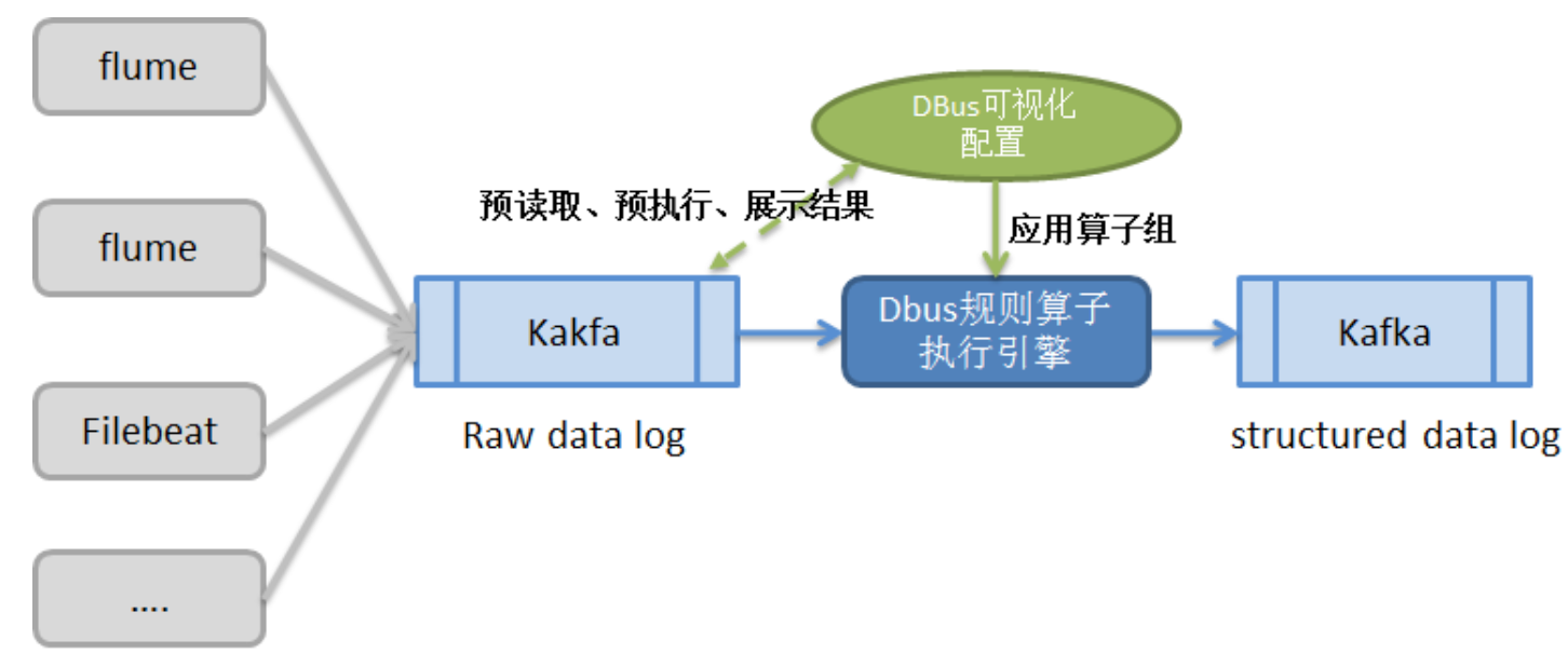 将配置好的规则算子组运用到执行引擎中,对目标日志数据进行预处理,形成结构化数据,输出到Kafka,供下游数据使用方使用。