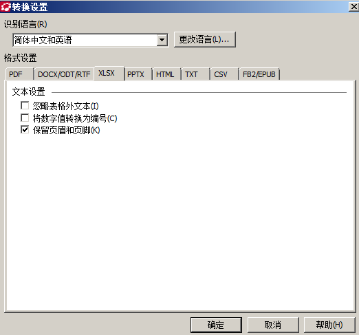 XLSX转换设置