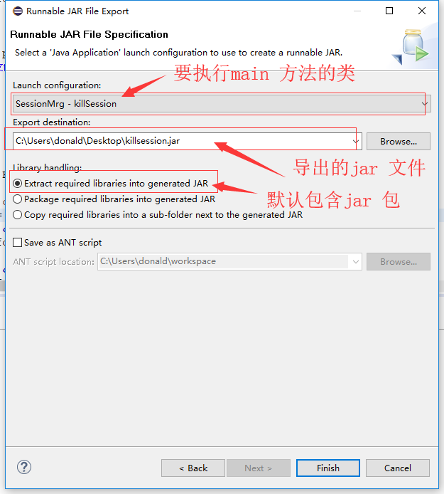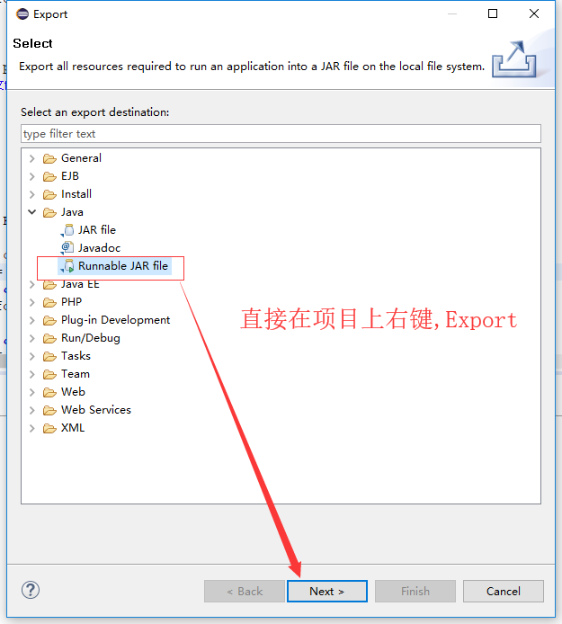 1. 选择导出runable jar ,直接导出jar file 可能不包括jar import 的jar 包