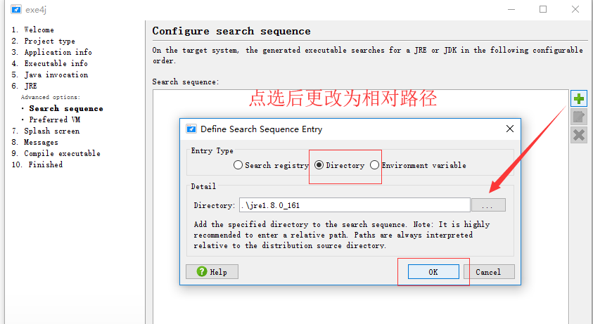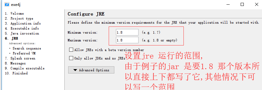 6.设置程序运行时需要的jre 版本范围,设置jre 相对路径