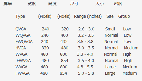 dip或dp(与密度无关的像素):这个和设备硬件有关,为了支持WVGA、HVGA和QVGA推荐使用这个。一种基于屏幕密度的抽象单位。设置一些view的宽高可以用这个,一般情况下,在不同分辨率,都不会有缩放的感觉。如果用px的话,320px占满HVGA的宽度,到WVGA上就只能占一半不到的屏幕了,那一定不是你想要的。