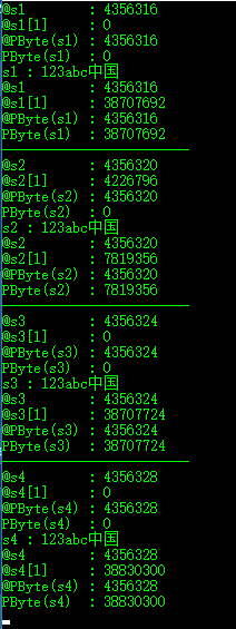 Writeln('PByte(s4) : ', Cardinal(PByte(s4)));