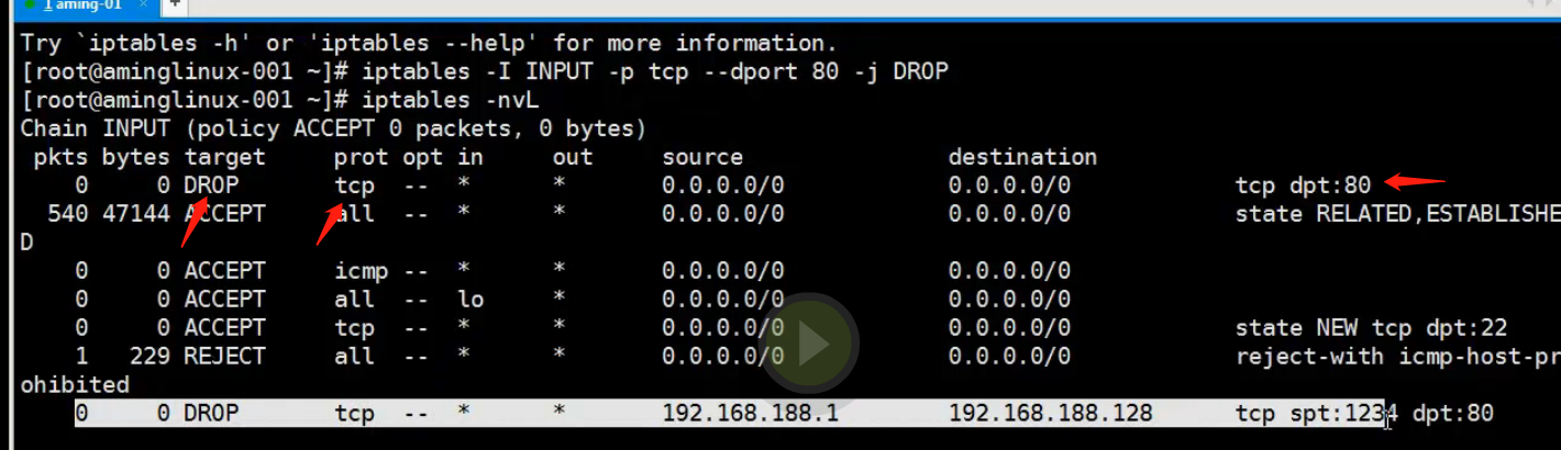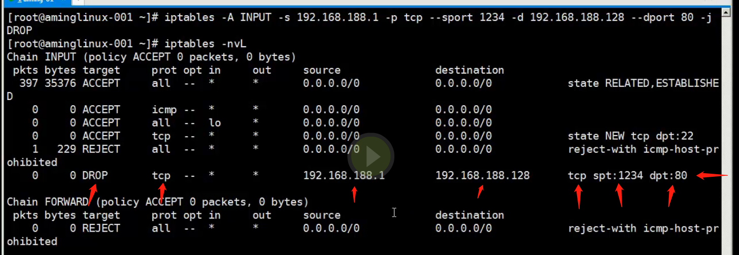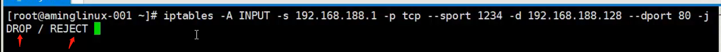 - 参数 -j 是指定操作规则的,后面接规则名称,这里是 DROP