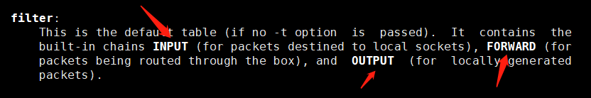- filter内置了3个链,分别是 input,output,forward 三个链