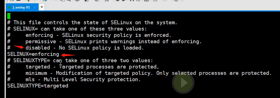 - 这里需要把 SELINUX=enforcing 的值 修改为 disabled