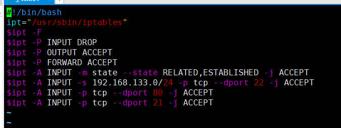 - $ipt -A INPUT -s 192.168.133.0/24 -p tcp --dport 22 -j ACCEPT
