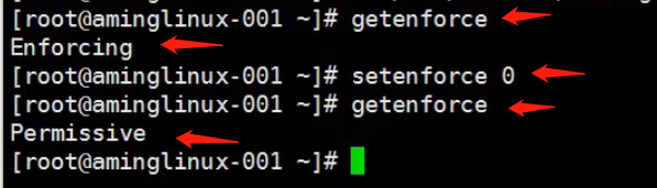 - 使用 setenforce 0 命令把 selinux 临时关闭