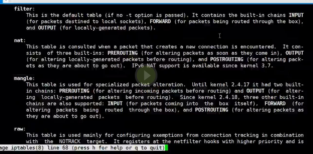 - 剩下的三个都不怎么常用,主要了解 filter 和 nat