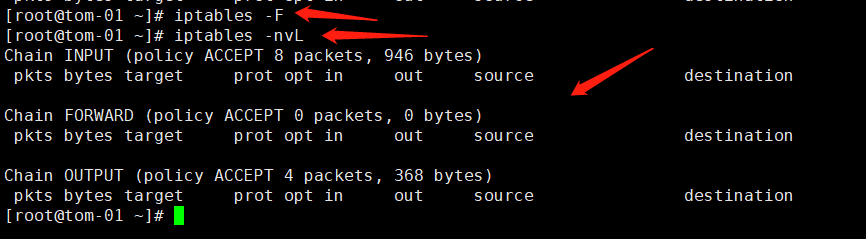 - 如图, iptables -F 命令可以把目前正在运行的规则清空