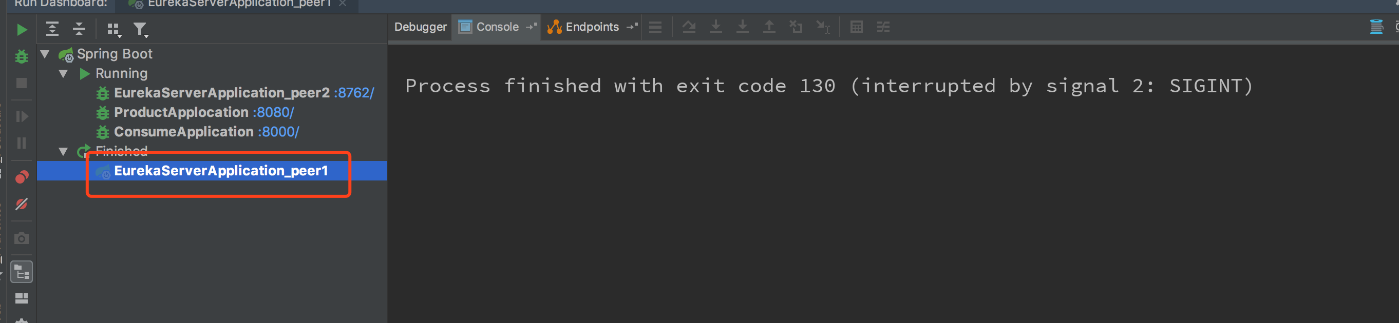 eureka: client: service-url: defaultZone: http://peer1:8761/eureka/,http://peer2:8762/eureka/ 3. 运行多个Eureka服务