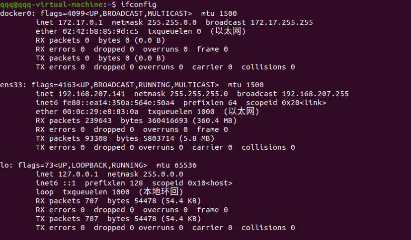 安装之前只有ens33网卡和lo网卡