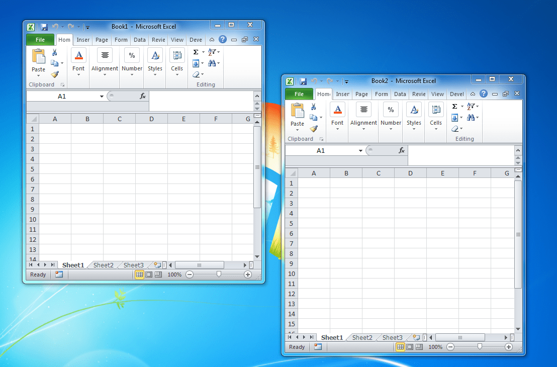 A great example of multiple frames/single document per frame (SDI) vs single frame/multiple documents per frame (MDI) is Microsoft Excel. Some of MDI benefits: