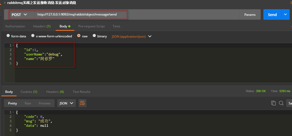 然后再将整个项目跑起来,在postman如下发送一个对象实体信息
