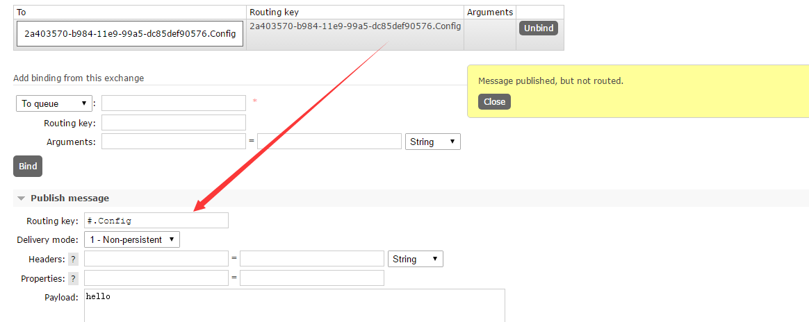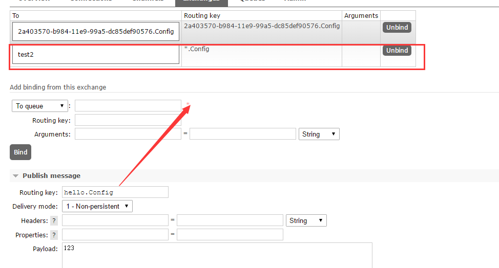 消息中的 routing-key 和 binding 中的 bingding-key 一致,交换器才将消息发送至相应队列。