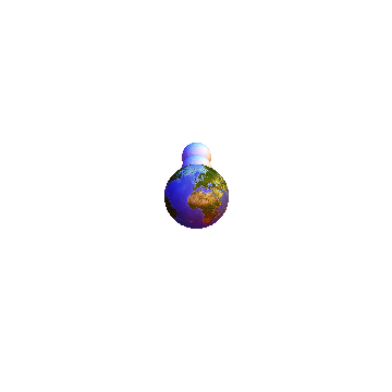 Let's draw a planet and its satellite, with the camera following the moon from a view directed toward the Earth. For example: