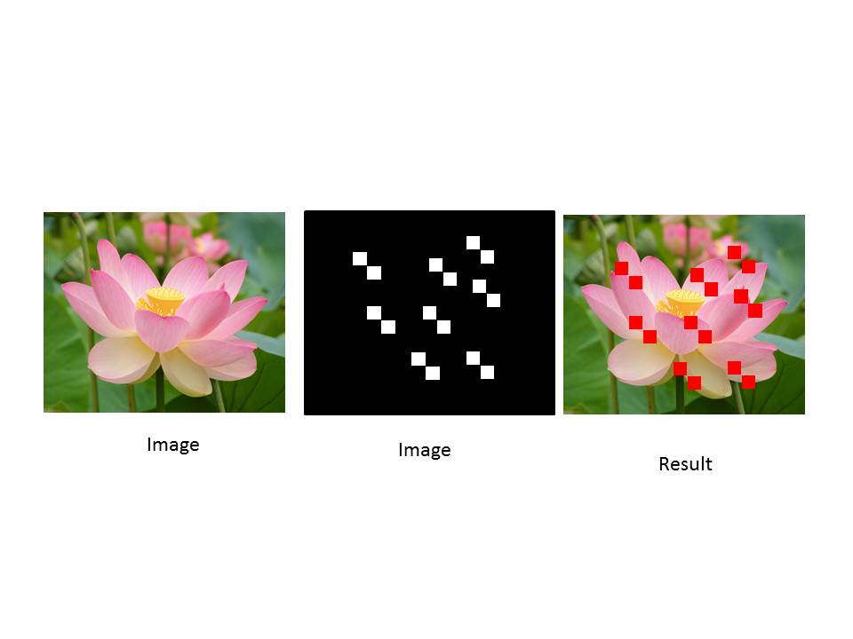 I'm trying to do a simple thing. I have a binary image and all I want is to overlay the binary image on a color image, but the white pixels in the binary image should be red, and the black transparent. I'm quite used to JavaFx but I'm stuck with this one. I know I could achieve it by iterating through all pixels with a PixelReader, but I'm sure there is an easier way. I tried to use some sort of Blend-effect but no luck so far. I think it should be similar to this: How to Blend two Image in javaFX