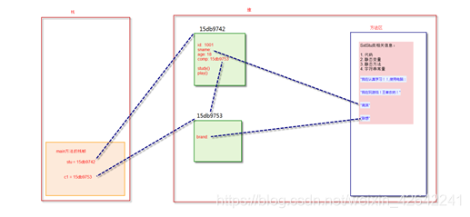new对象时调用构造方法,也是方法,要开辟新的栈帧(图中没画是因为对象创建完毕)