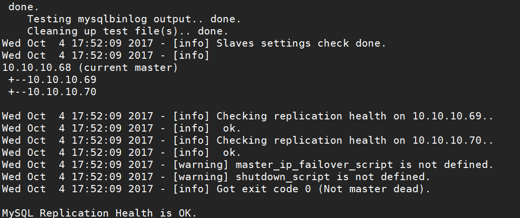 其中"Ping(SELECT) succeeded, waiting until MySQL doesn't respond.."说明整个系统已经开始监控了。
