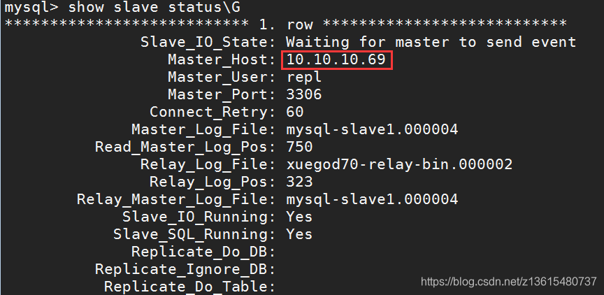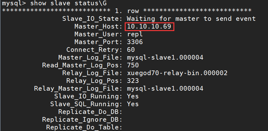 登陆从服务器xuegod70查看show slave status\G是否成功切换