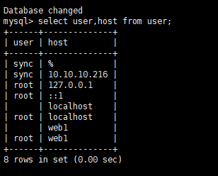 mysql>grant replication slave on *.* to 'sync'@'10.10.10.216' identified by 'sync';
