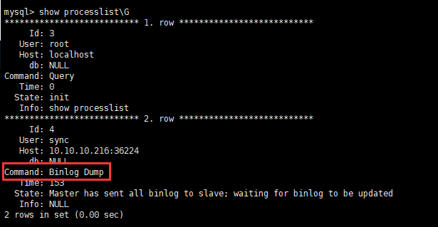 看到上面的Command: Binlog Dump说明配置成功!
