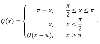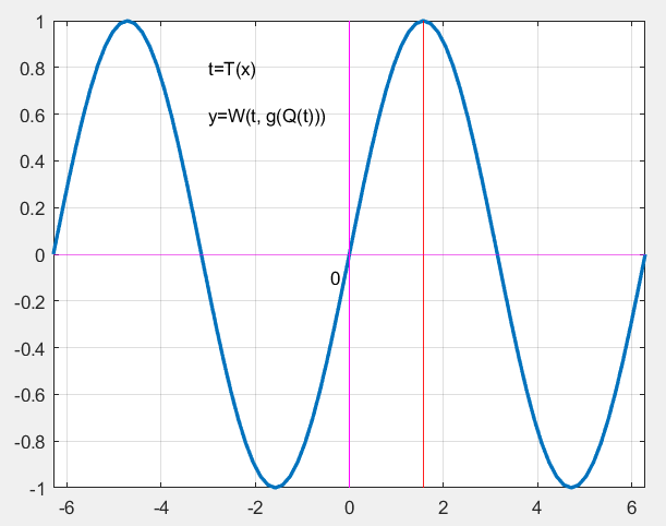 其中,函数T(t)表示将t变换到单个周期内;函数W(t,y)表示根据t取值,对三角函数的因变量y进行正负变换(即关于X轴对称的象限变换);函数Q(t)表示对t进行关于直线t = π/2的对称变换。