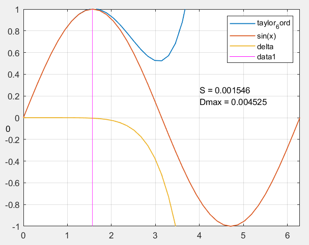 19 tayl = taylor(sin(sx), sx, 'Order', n);