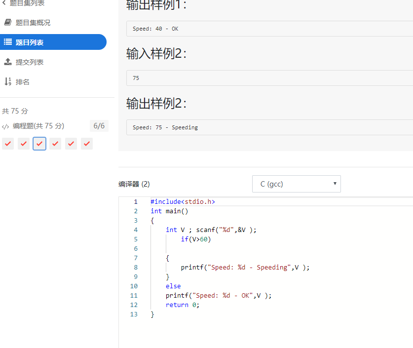 输入汽车速度,如果速度超出60 mph,则显示“Speeding”,否则显示“OK“