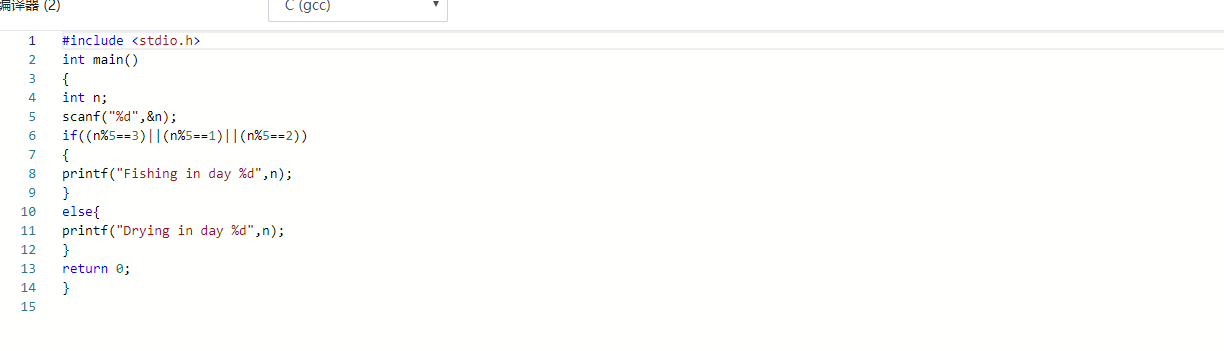 题目内容描述:计算此人在第n天是“打鱼”还是“晒网”。