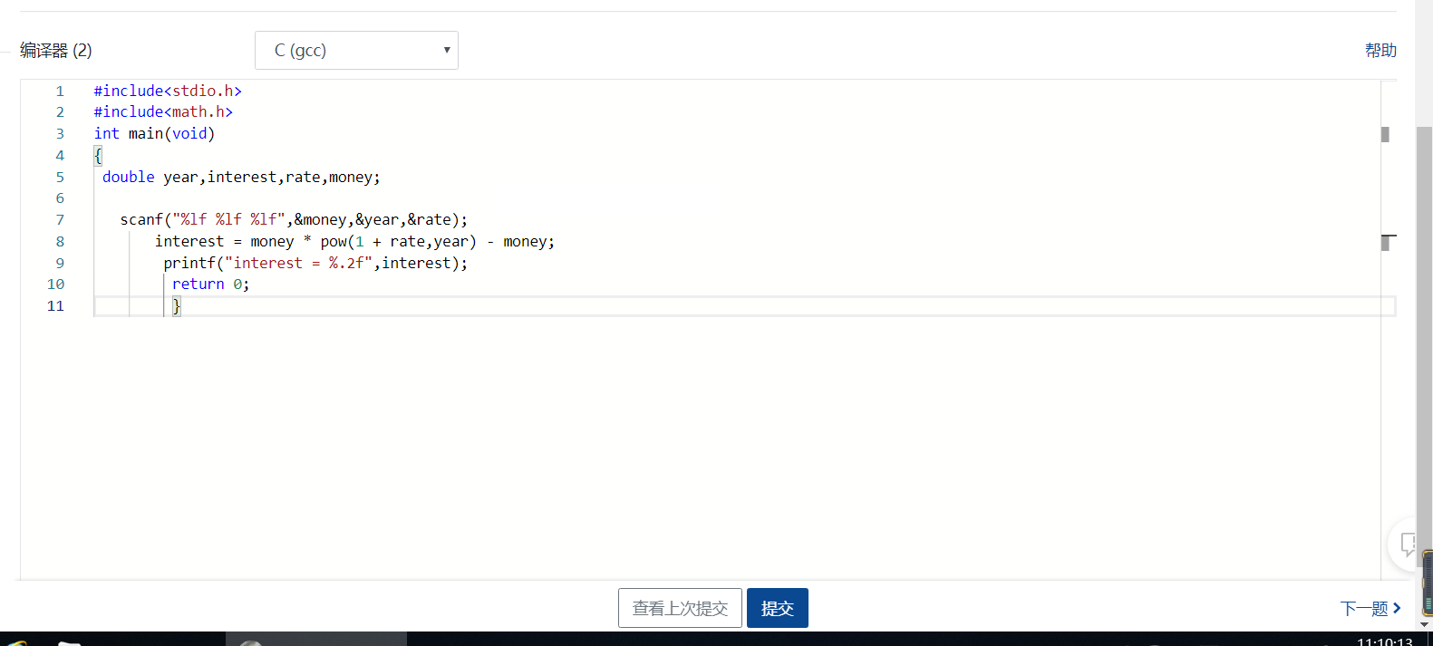 题目内容描述:利用计算公式interest=money*(1+rate)^year-money计算存款利息