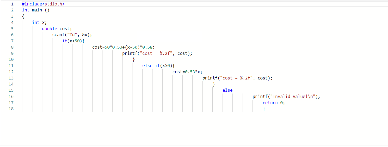 为了提倡居民节约用电,某省电力公司执行“阶梯电价”,安装一户一表的居民用户电价分为两个“阶梯”:月用电量50千瓦时(含50千瓦时)以内的,电价为0.53元/千瓦时;超过50千瓦时的,超出部分的用电量,电价上调0.05元/千瓦时。请编写程序计算电费。
