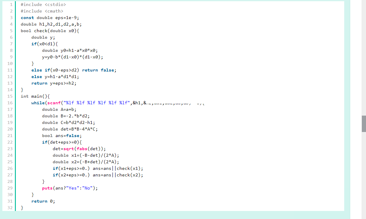 数据表达:本题采用双精度浮点变量,采用scanf输入,printf输出。
