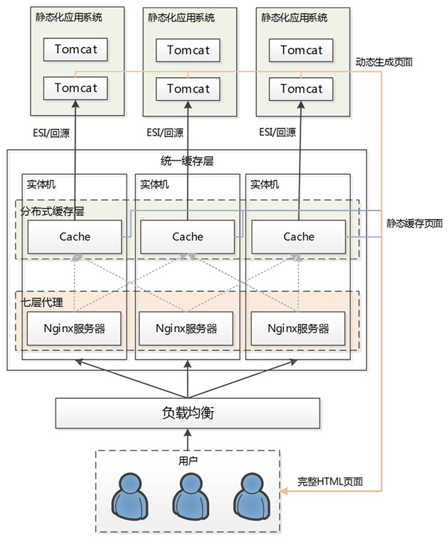 统一缓存层支持ESI或CSI方式获取动态内容;
