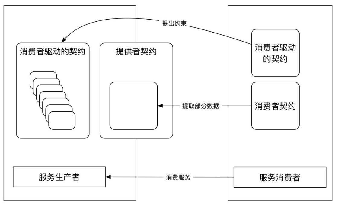消费者驱动的契约:代表服务提供者向其所有当前消费者承诺遵守的约束。一旦各消费者把自己的具体期望告知提供者,则提供者无论在什么时间和场景下,都不应该打破契约。