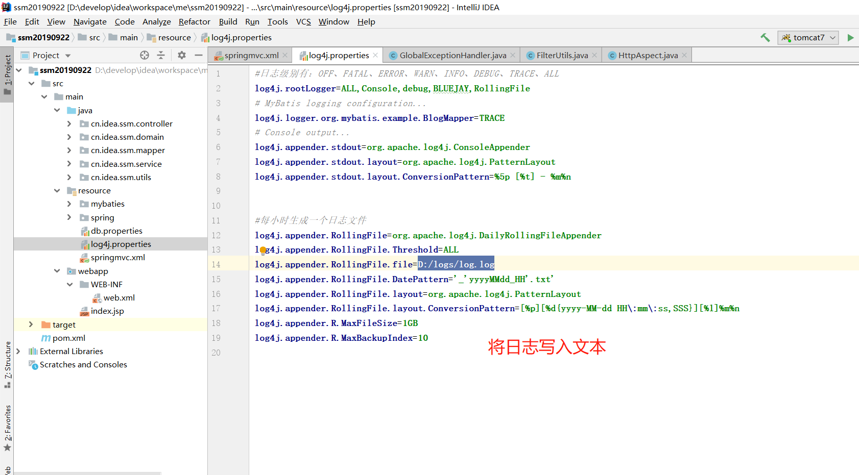 log4j.appender.RollingFile.file=D:/logs/log.log