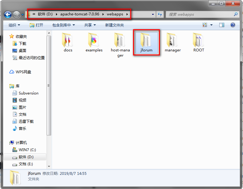 解压源码包到Tomcat的webapps目录下即。命名为jforum。