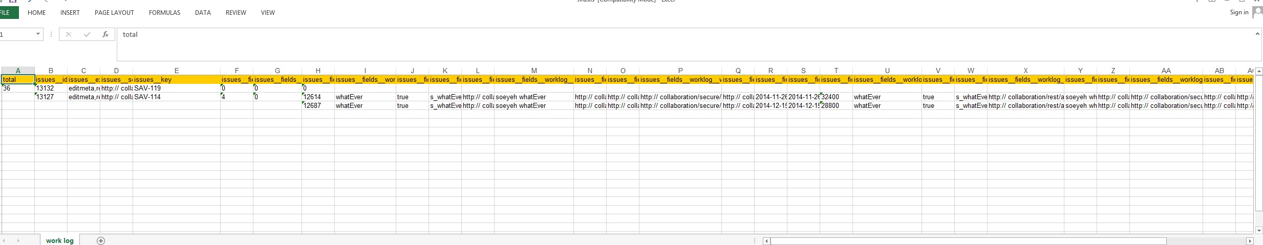 "self": "http:// collaboration/rest/api/2/issue/13127/worklog/12614",