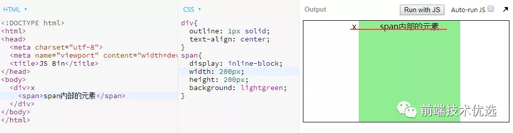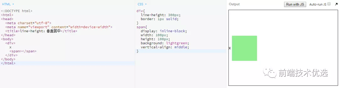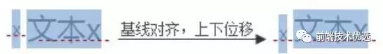 如果改为vertical-align: top是一样的,因为合一了。但是vertical-align: middle却不行,因为此middle的位置是基线往上 1/2 个e-height的地方。