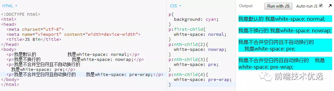 我们都知道如果在html中输入多个空白符,默认会被当成一个空白符处理,实际上就是这个属性控制的:地址