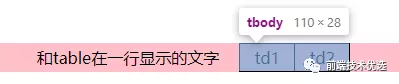 右侧的table和左侧的文字在一行排列(外在盒子inline的表现特征),同时有拥有自定义宽度111px(内在盒子table可以设置宽高)。