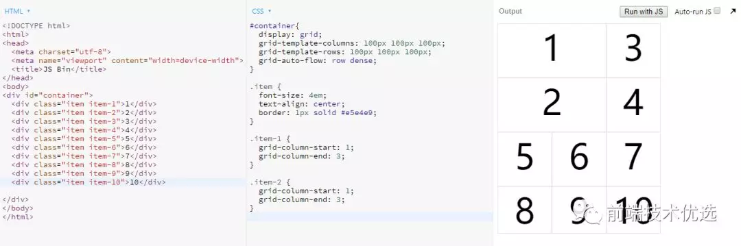 网格布局(Grid)是最强大的 CSS 布局方案。注意,设为网格布局以后,容器子元素(项目)的float、display: inline-block、display: table-cell、vertical-align和column-*等设置都将失效。参见阮一峰大佬的CSS Grid 网格布局教程。