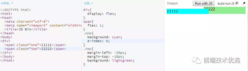 但是弹性盒子display: flex不同,弹性盒子的子元素支持设置z-index,且设置了数值的z-index也会自动创建层叠上下文。如下图,可以看到设置了z-index: 0的元素层叠水平更高。地址
