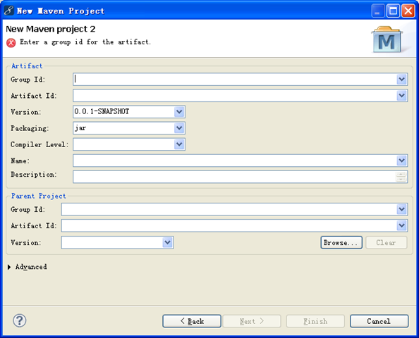 这时需要你输入Group Id ()和Artifact Id ()等信息