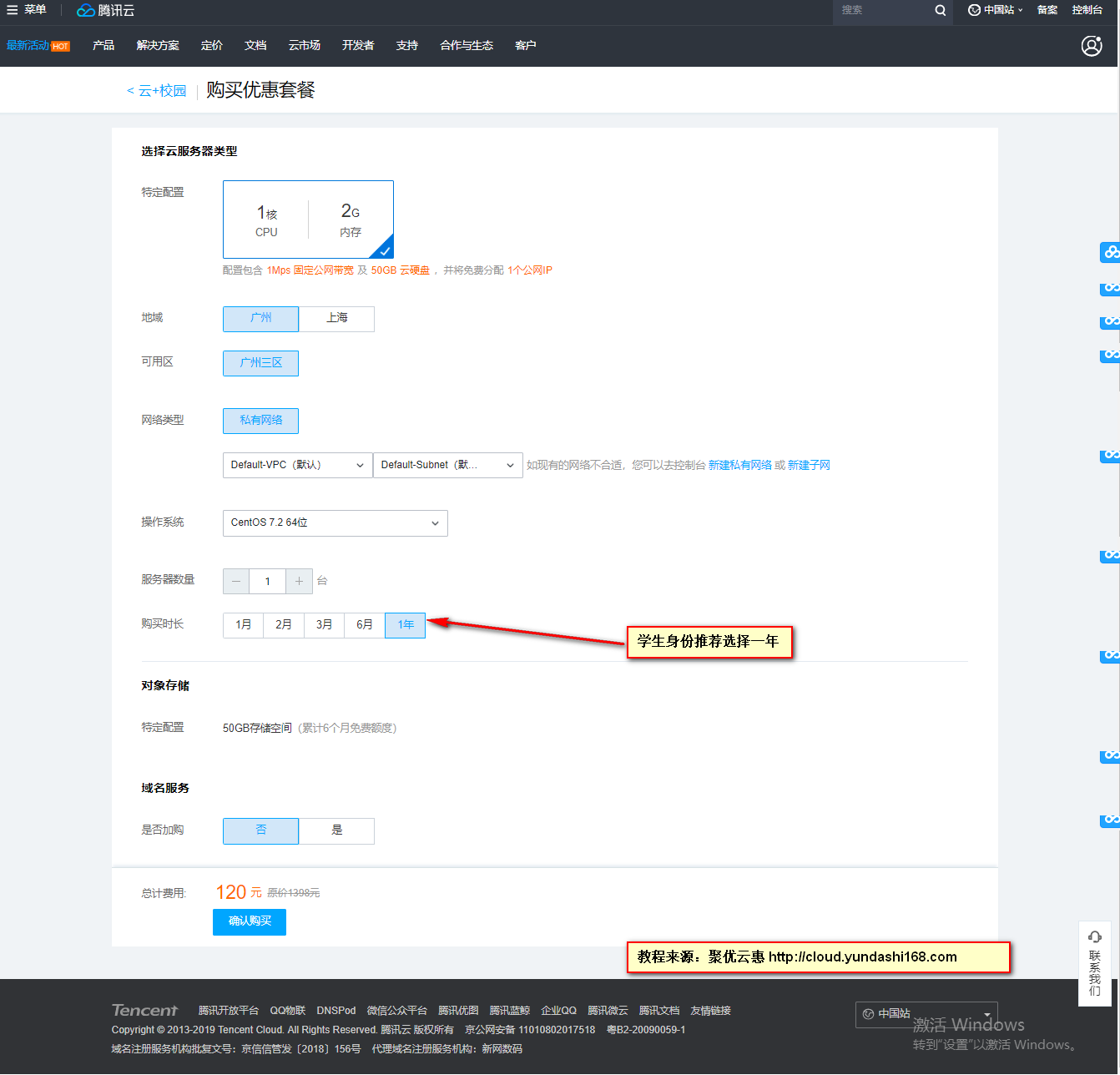 【温馨提醒】:你用学生身份购买了学生服务器一个月的话,一个月过完,你还想用服务器的话,就不能继续享有学生服务器价格了(以正常价格购买腾讯云服务器),所以机会只有一次,好好把握你的学生身份,推荐学生购买一年,方便彻底体验和熟悉云服务器。