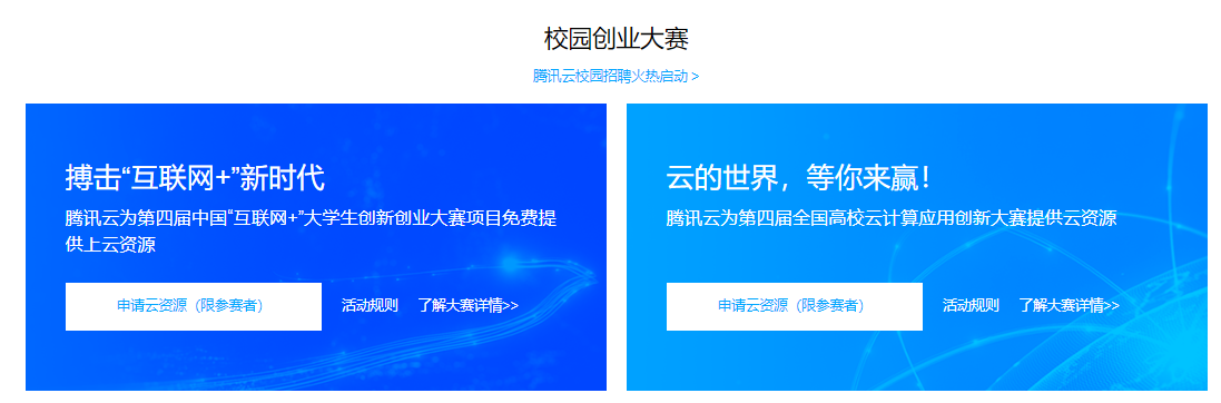 - 优势三:参加校园创业大赛,腾讯云校园招聘火热启动 活动链接