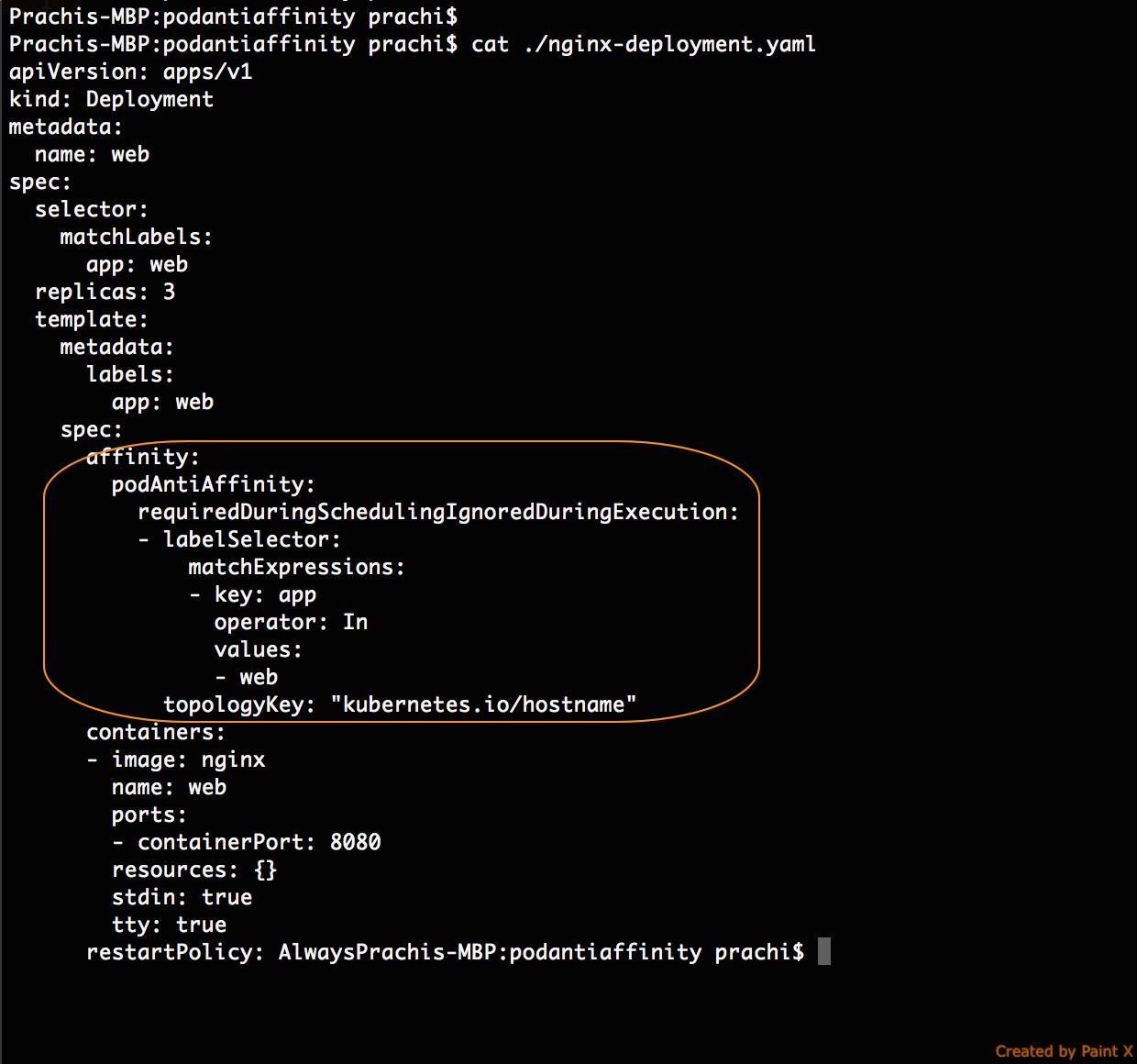 由于指定了podAntiAffinity,因此三个pod最终位于不同的节点上。为了进一步检查podAntiAffinity的应用方式,我可以将部署扩展到四个pod。请注意,由于调度程序无法找到满足podAntiAffinityrule的另一个节点,因此无法调度第四个pod。