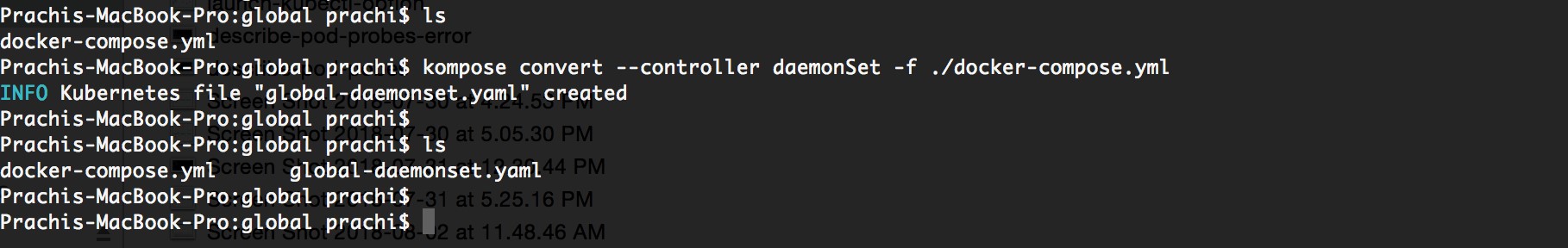 回头想想上面提到的docker-compose.yml规范,其中的Nginx服务就是全局服务。如下是使用Kompose将其转换为Kubernetes YAML的方法: