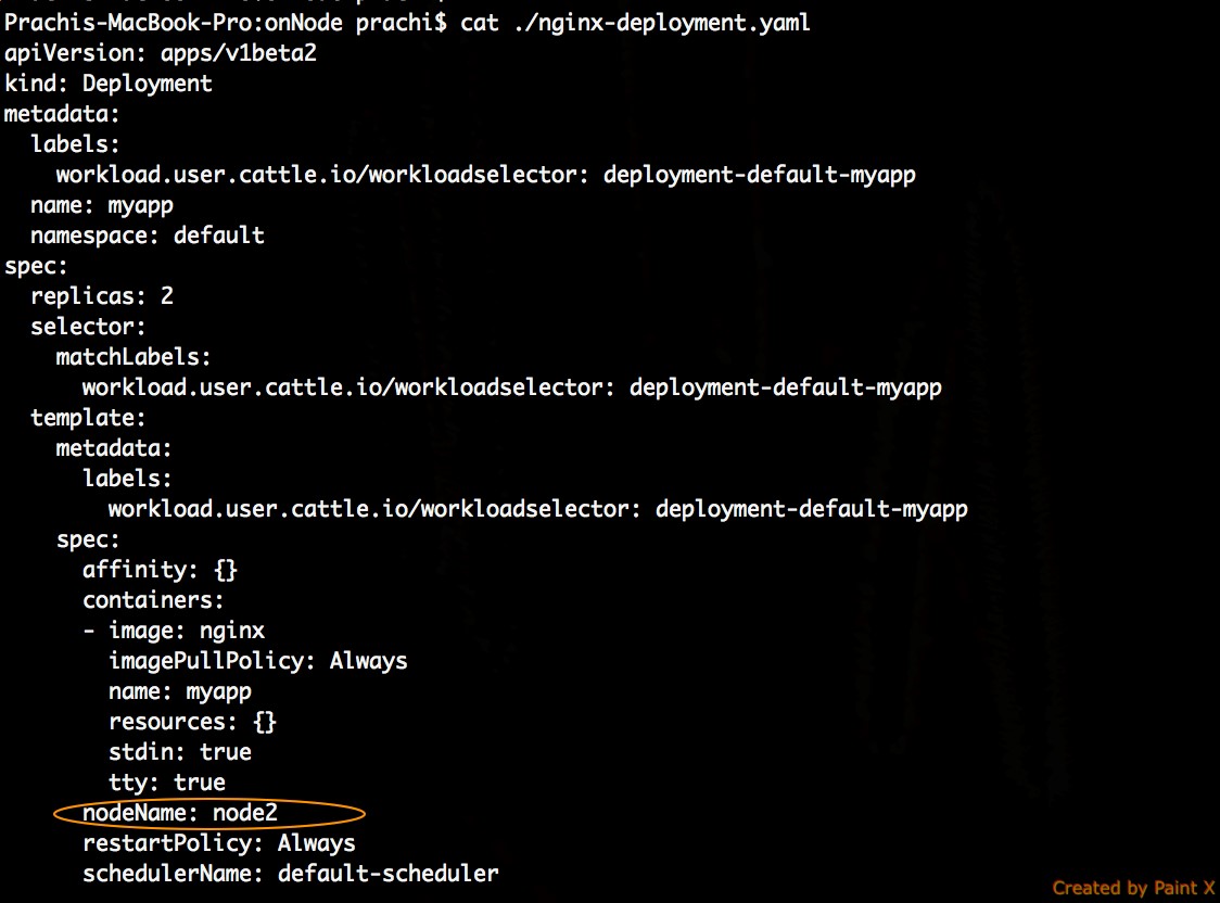 在这里,我使用特定节点上的nginx镜像部署scale = 2的工作负载。